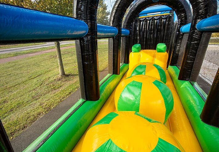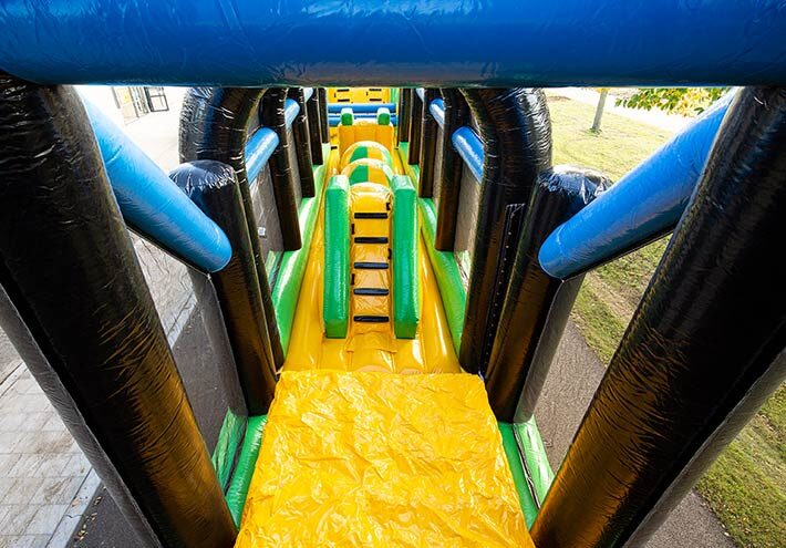 Ez a gyönyörű élénk színű akadálypálya garantáltan különlegessé teszi majd rendezvényeit. Ez az akadálypálya nem kevesebb, mint 40 méter hosszú, és olyan akadályokkal tervezték melyek futásra, kúszásra-mászásra és csúszásra ösztönöznek. Rengeteg kalandot ígér ez az akadálypálya, mely alkalmas időmérő versenyjátékok lebonyolítására is, mivel egyszerre két versenyző tudja teljesíteni a pályát. Ki lesz vajon az első, aki lecsúszhat a csúszdán? Kihagyhatatlan sportesemények, hexatlonok, vagy csapatépítők alkalmával. Ez az akadálypálya négy részletben szállítható a könnyű mozgathatóság érdekében.