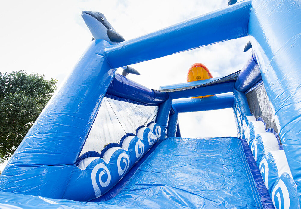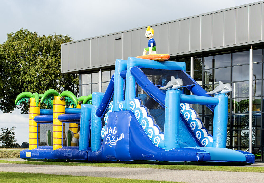 Ez a 17 méter hosszú akadálypálya csodálatos szín- és formavilágával magára vonzza minden felnőtt és gyermek tekintetét. Az akadálypályát olyan klassz 3D-s elemekkel tervezték, mint a pálmafák, a hullámok, a delfinek, és a szörfös, így könnyen egy tengerpartra repíthet bennünket képzeletünk. A légvárat nagyon jól lehet akár csapatversenyre is használni, egyszerre két versenyző futhat az extra széles akadálypályán. Ki lesz a leggyorsabb, aki le tud csúszni a csúszdán az akadályok legyőzése után? Ez az akadálypálya két részből áll, így könnyű a szállítása és felállítása is.