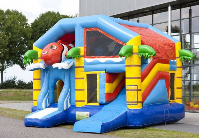 Funny légváraink a legkeresettebb termékeink közé tartoznak, és most itt a tetővel rendelkező változata is! Gyönyörű élénk színekkel, több 3D-s figurával díszítve azonnal magára vonzza mindenki tekintetét. Ez a légvár igen népszerű a kisebb és nagyobb gyermekek körében is, köszönhetően a többfunkciós kialakításnak: az ugrófelületnek, csúszdának, akadályoknak, alagútnak és boxzsákoknak. A tető véd a káros UV sugárzástól és a szemerkélő esőcseppektől, nem utolsó sorban a meleg napon kellemes árnyékot biztosít. Próbálják ki ezt klassz játékot a „víz alatt” a bohóchalakkal! Valóban szórakoztató ugrálóvár minden kicsi és nagy gyermek számára!