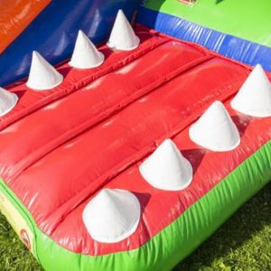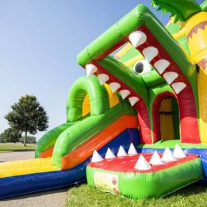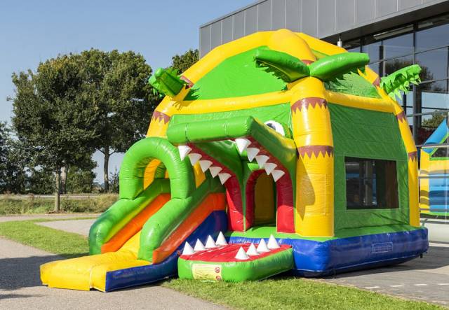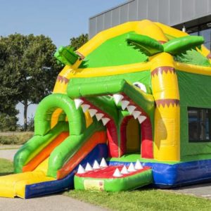 Ez a vidám krokodilos ugrálóvár a legnépszerűbb témák közé tartozik, szemet gyönyörködtető színei vonzzák a tekinteteket. Két széles körben népszerű játék kombinációja ez a légvár: az ugráló és a csúszda keveréke. Az ugrálóvár elülső részén egy hatalmas krokodil található a bejáratnál, és rögtön mellette a kijárat egy csúszdával ér véget. Az ablakoknak köszönhetően a szülők, a felügyelők és a gyerekek is jól látják, mi történik a légvár belsejében, és a szellőzés is remekül megoldott. A tető szuper kültéri használatra: megvédi a gyerekeket a csapadéktól és az UV sugárzástól. Valóban szórakoztató ugrálóvár minden kicsi és nagy gyermek számára!