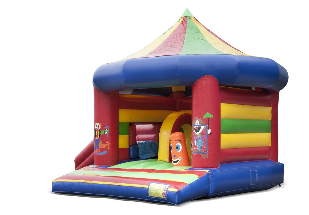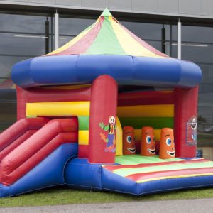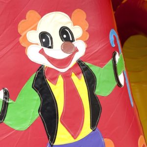 Ez az ugrálóvár szemet gyönyörködtető színekben pompázik, amely azonnal felhívja a gyermekek figyelmét, különösen az óriás cirkuszi sátorra emlékeztető kialakítás. A vidám bohócokkal és akadályokkal rendelkező légvár minden gyerkőc arcára boldog mosolyt csal. Ez az ugráló tetővel ellátott, és széles belépővel rendelkezik ahhoz, hogy könnyebben mászhassanak be a gyerekek az ugrálófelülethez. Az oszlopon egy praktikus zseb is található, így reklámok is elhelyezhetőek benne.