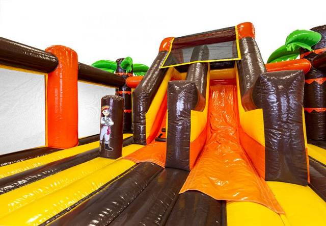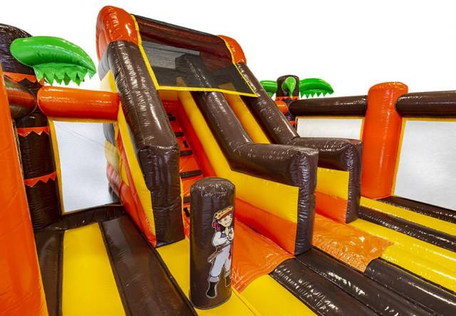 A gyerekek azonnal izgatottak lesznek, amikor meglátják ezt a szuper kalózos témájú arénát, és feltétlen játszani akarnak majd az ugrálóvárban. Elegendő hely van benne, hogy boldogan ugrálhassanak és süvítve csúszdázzanak a gyerekek. Minden megtalálható a bekerített aréna beljesében, így mindenki biztonságosan játszhat, és még szennyeződés sem kerül a játékba, mert a csúszda eleje és vége is a zárt térben kapott helyet. Nagyszerű időtöltést szerezhet vendégeinek, valóban szórakoztató ugrálóvár minden kicsi és nagy gyermek számára!