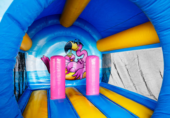 Ez az igazán modern formájú, vagány színekben ragyogó ugrálóvár bármilyen rendezvényen megállja a helyét. Az ugrófelületen két akadály is helyet kapott, így izgalmasabb a játék. Kiváló választás kültérre, hisz a tető védi a gyerekeket az UV sugárzástól és a csapadéktól is, a hálós oldala miatt viszont remekül jár benne a levegő, nem fülled be, azonban beltéren is könnyen fel lehet állítani. A gyerekek szeretni fogják az oviban, gyerekzsúron vagy bármilyen más rendezvényen.